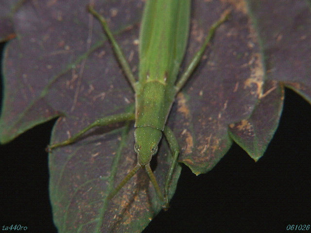 というのは秋の某日、拙宅の狭い庭におんぶした雌雄のオンブバッタを発見したことから始まります。彼らは幾日もそこに留まり続けました。果たして、彼らの色はもともと緑色だったものが、いつの間にか褐色に変わっていました。その2匹が入れ違ってないかと言われれば、容器の中に閉じ込めた訳ではないので、確たる証拠はありませんが、特別でもないピンポイントに別な2匹が入れ替わり立ち代わり来るようなことはないとふつう考えるのが常識でしょう。