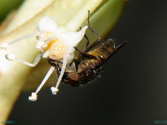 ▼複眼の縞模様が非常に美しいツマグロキンバエ近縁種?061110