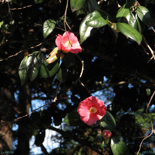 小春日和に陽だまりの中で咲くヤブツバキを眺めるのはいいものです。何だかほのぼのとした気持ちになるのは、我々のDNAがそうさせるのでしょうか?北海道と東北を除く日本の平野部の殆どは、本来の植生が照葉樹林(常緑広葉樹林)ですから、有史以前の我々日本人の祖先も、今頃になるとたくさんのヤブツバキの花を見てきたに相違ありません。