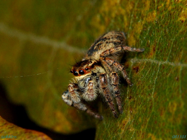 ハエトリグモは網を張らず、徘徊して餌を捕まえるタイプの蜘蛛ですが、巣らしきものを全然作らないかというと、そうではないようです。