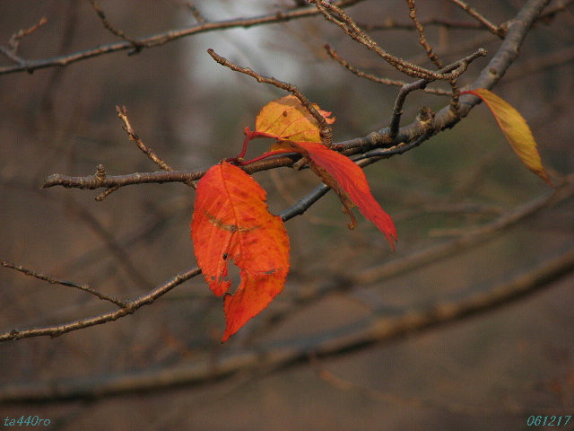 ▼歩き始めの川の土手(12月だというのにエノキにはまだこんなに葉が残っていました)
