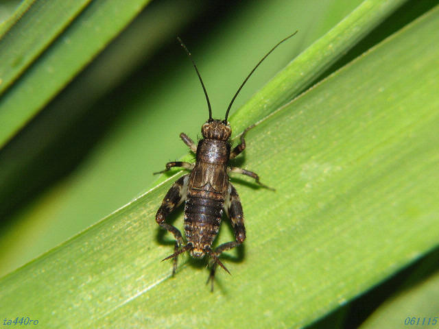 ▼写真のマダラスズなど今は卵で冬眠中でしょう。年2回発生し、1回目に成虫が出るのは6月頃になります。これはメスですので、気温に関わらず鳴きません(笑)。061115