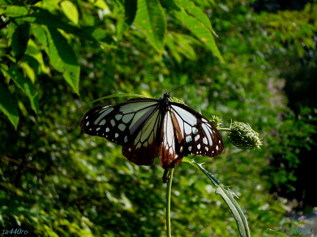 アサギマダラは、日本では5月から10月頃まで山地で見ることのできる、大型の美しい斑蝶(マダラチョウ)です。透明感のある浅葱(アサギ)色の翅が実にきれいです。