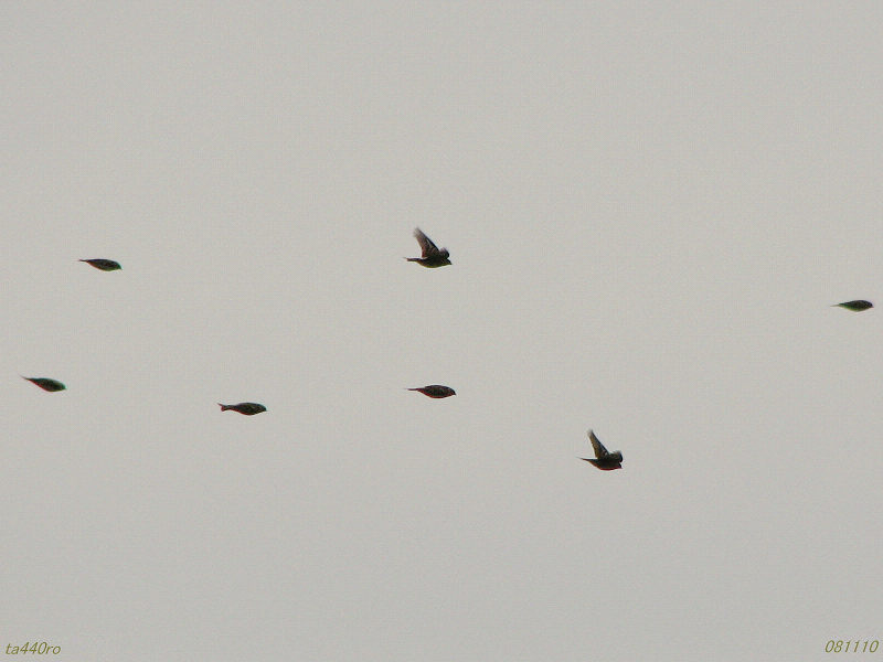 アトリはここ見沼田圃では冬じゅう滞在する鳥ではなく通りすがりの鳥です。寒くなりかけの季節、まだまだ移動中の鳥が見られるようです。081110