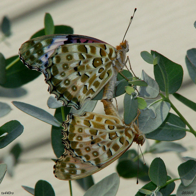 自宅の庭にやってきたツマグロヒョウモンのカプルです。