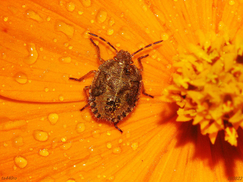 このカメムシはミツボシツチカメムシといいますが、調べてみると4、5月が成虫の出現期になっているものが多いので、普通よりずいぶん長生きしているようですね。